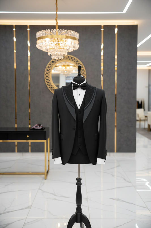 Costume de cérémonie homme 3 pièces noir et or : Vegas