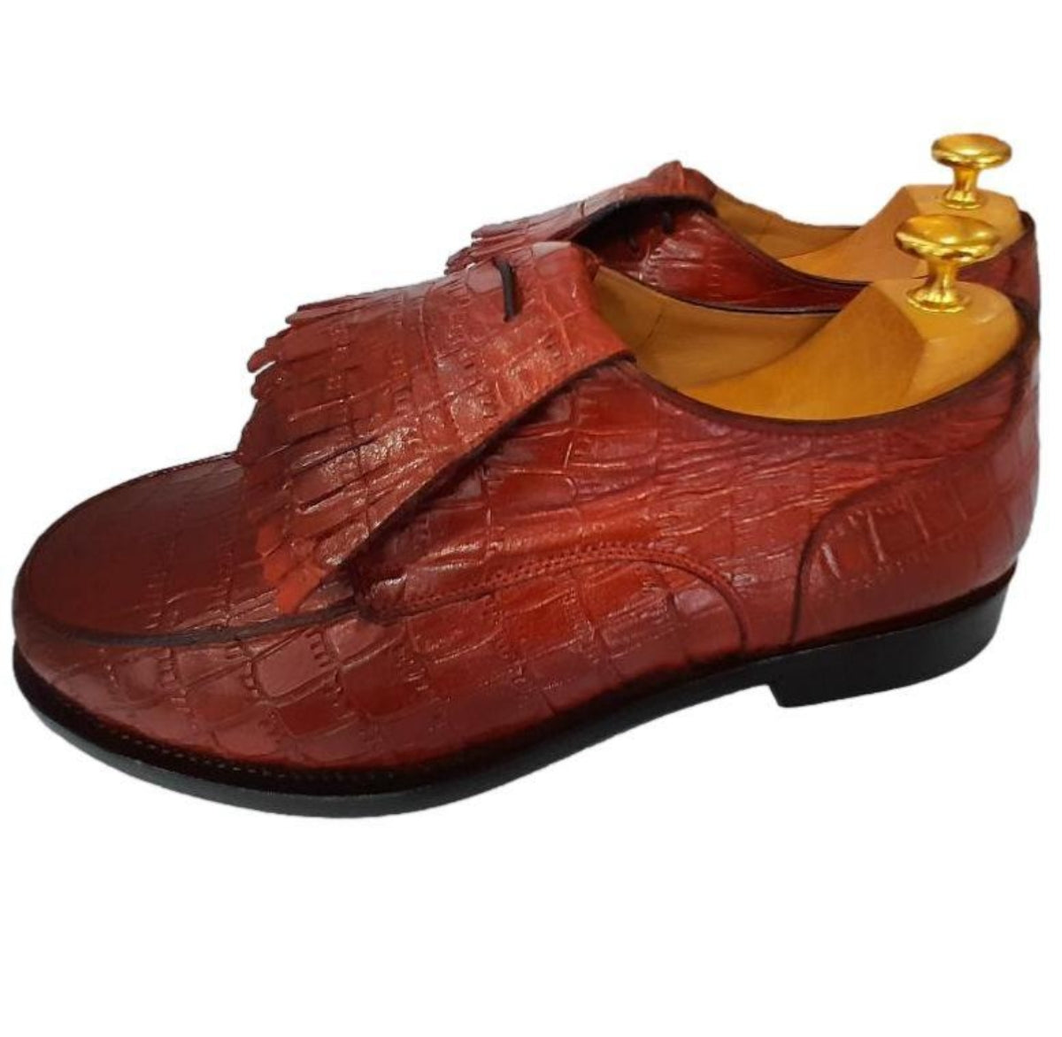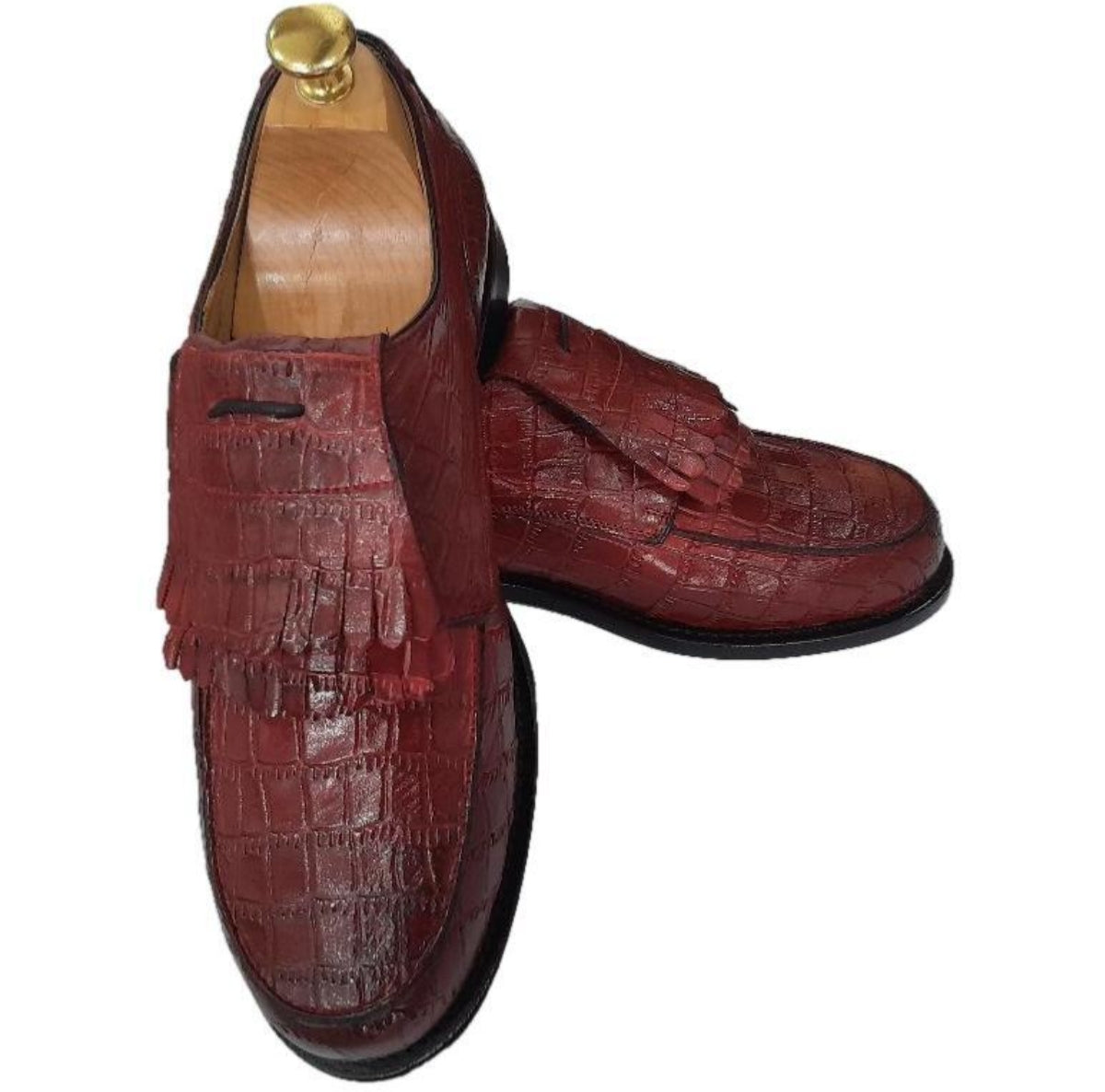 La chaussure Derby Apache en cuir rouge façon croco allie élégance et robustesse.