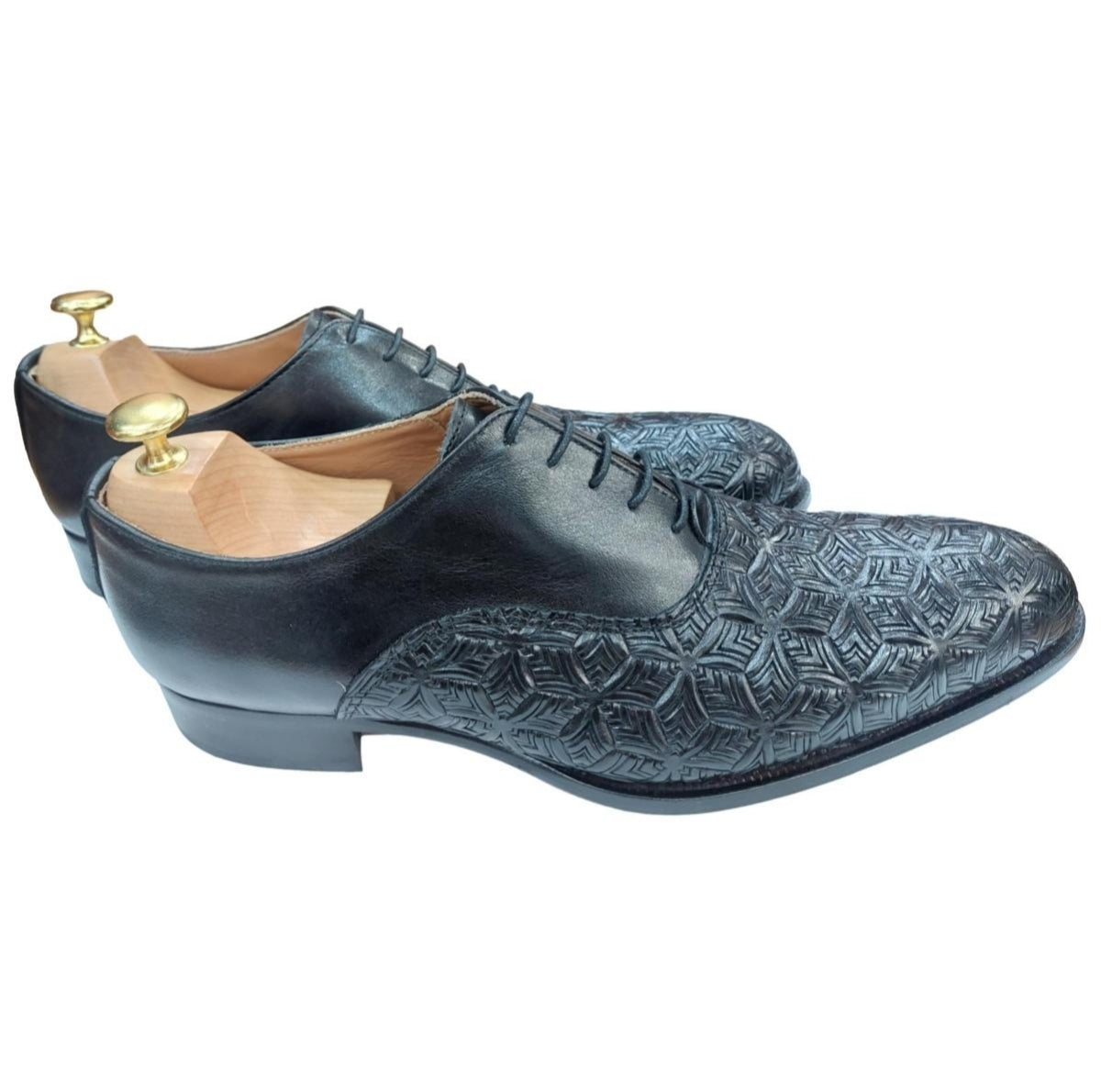 La chaussure Richelieu bi-matière noir Barcelona allie élégance et savoir-faire artisanal italien.