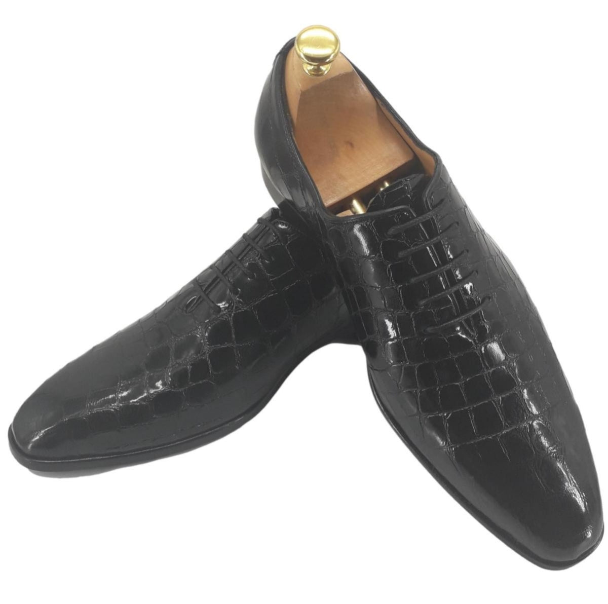 - Style à lacets : cuir façon croco verni