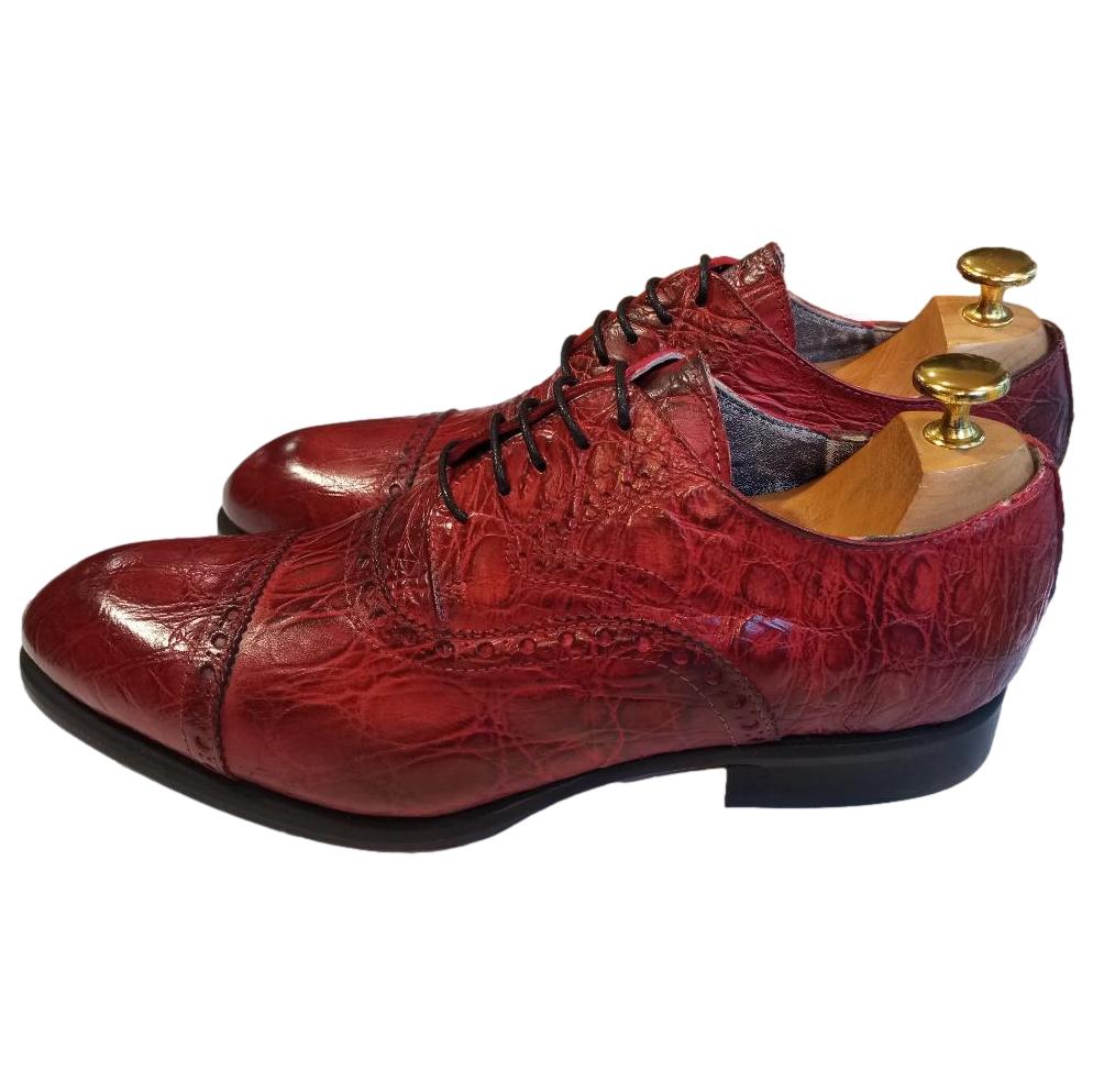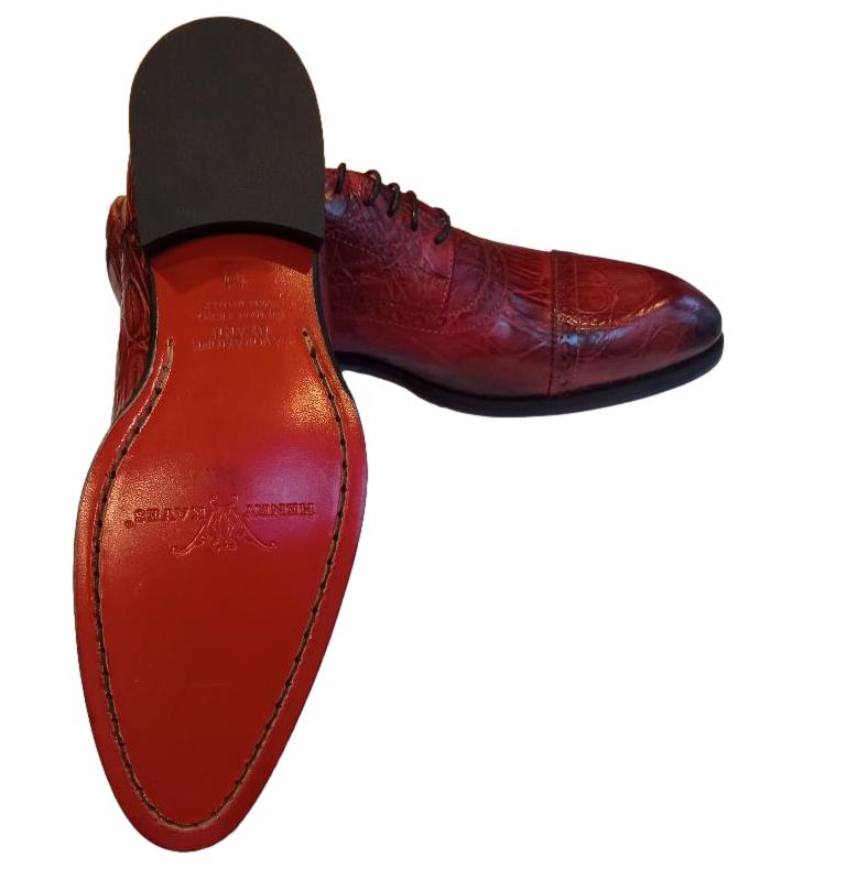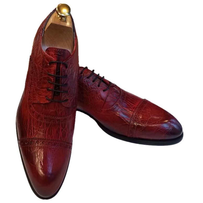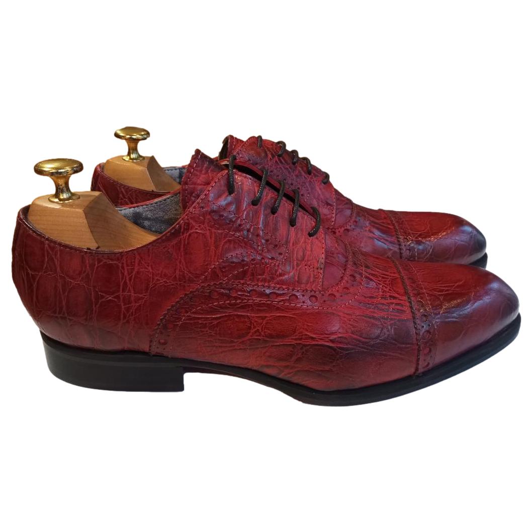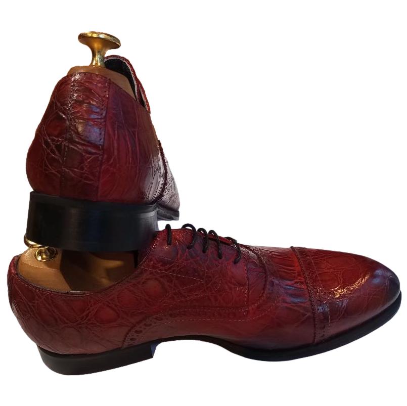 - Confectionnée en cuir de veau pleine fleur façon croco, la Richelieu Owen rouge allie élégance et originalité.
