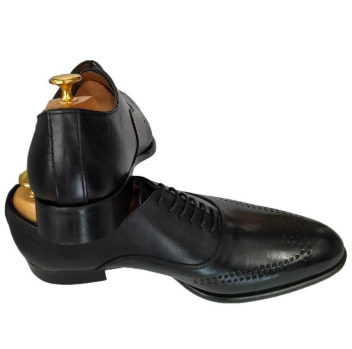 La chaussure Richelieu noir Boris incarne l'élégance classique grâce à son cuir de veau pleine fleur, souple et résistant.
