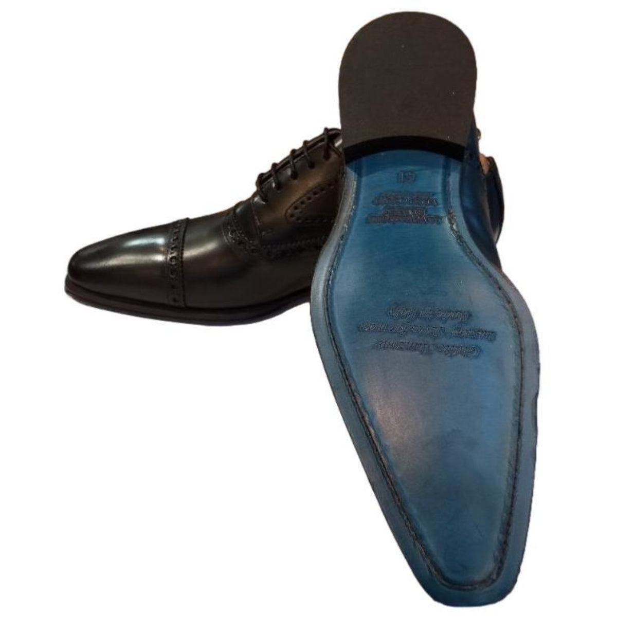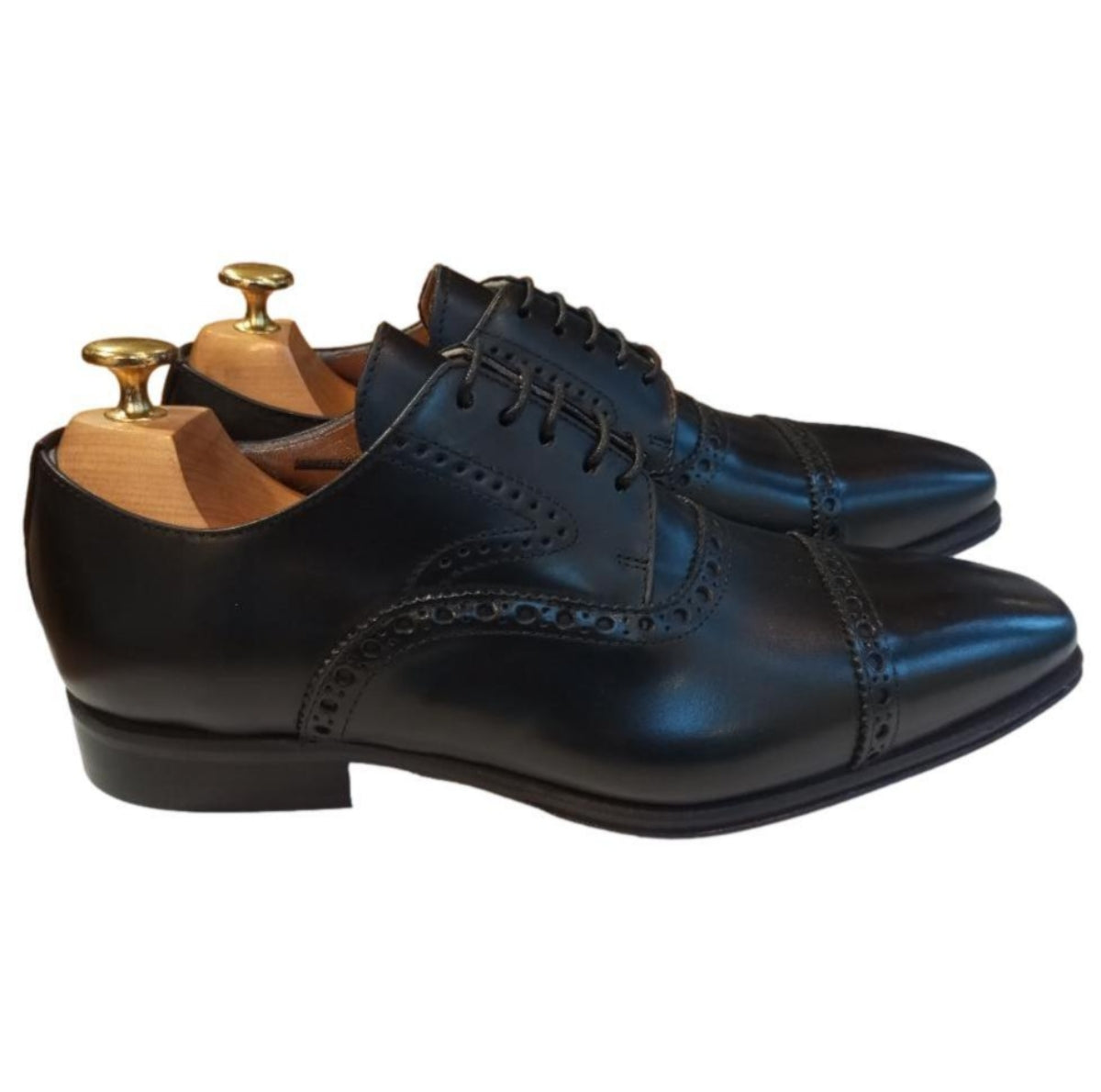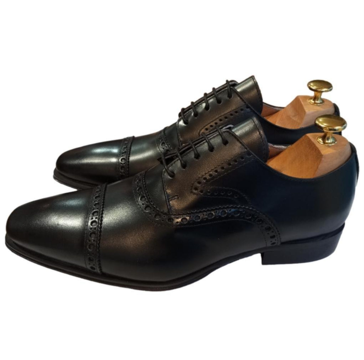 La chaussure Richelieu noir Enzo incarne l'élégance classique grâce à son cuir de veau pleine fleur, souple et résistant.