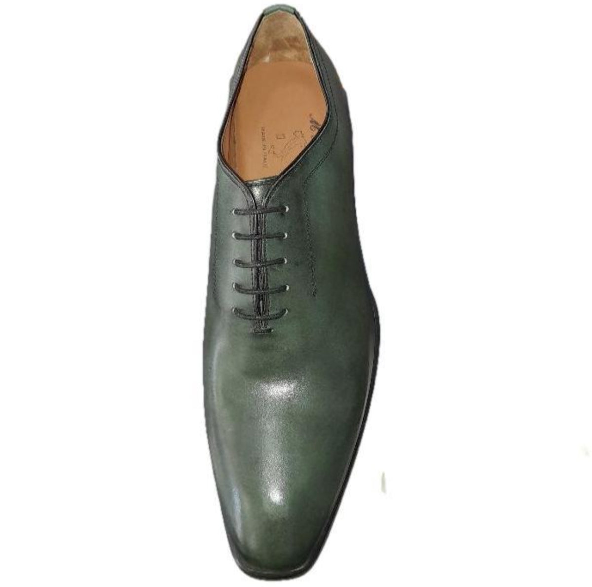 La chaussure Richelieu Georgia en cuir de veau pleine fleur vert est un modèle d’exception alliant élégance et robustesse.