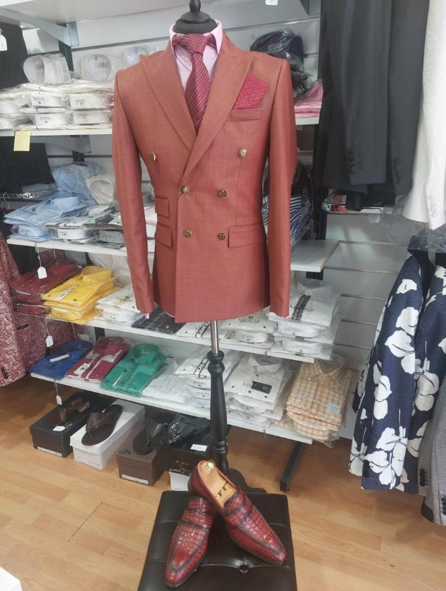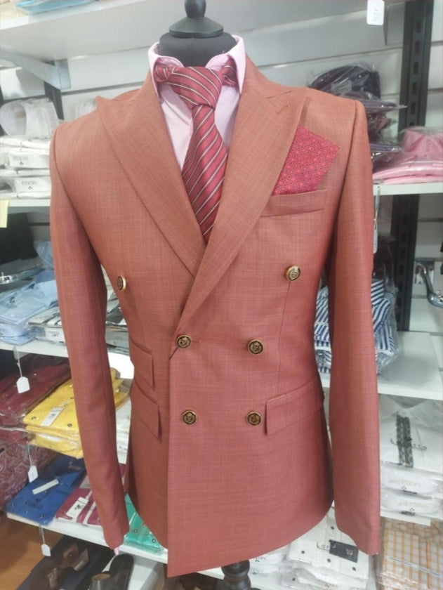 Le costume blazer croisé Blaise allie élégance classique et modernité avec sa teinte bordeaux raffinée et ses boutons dorés distinctifs.