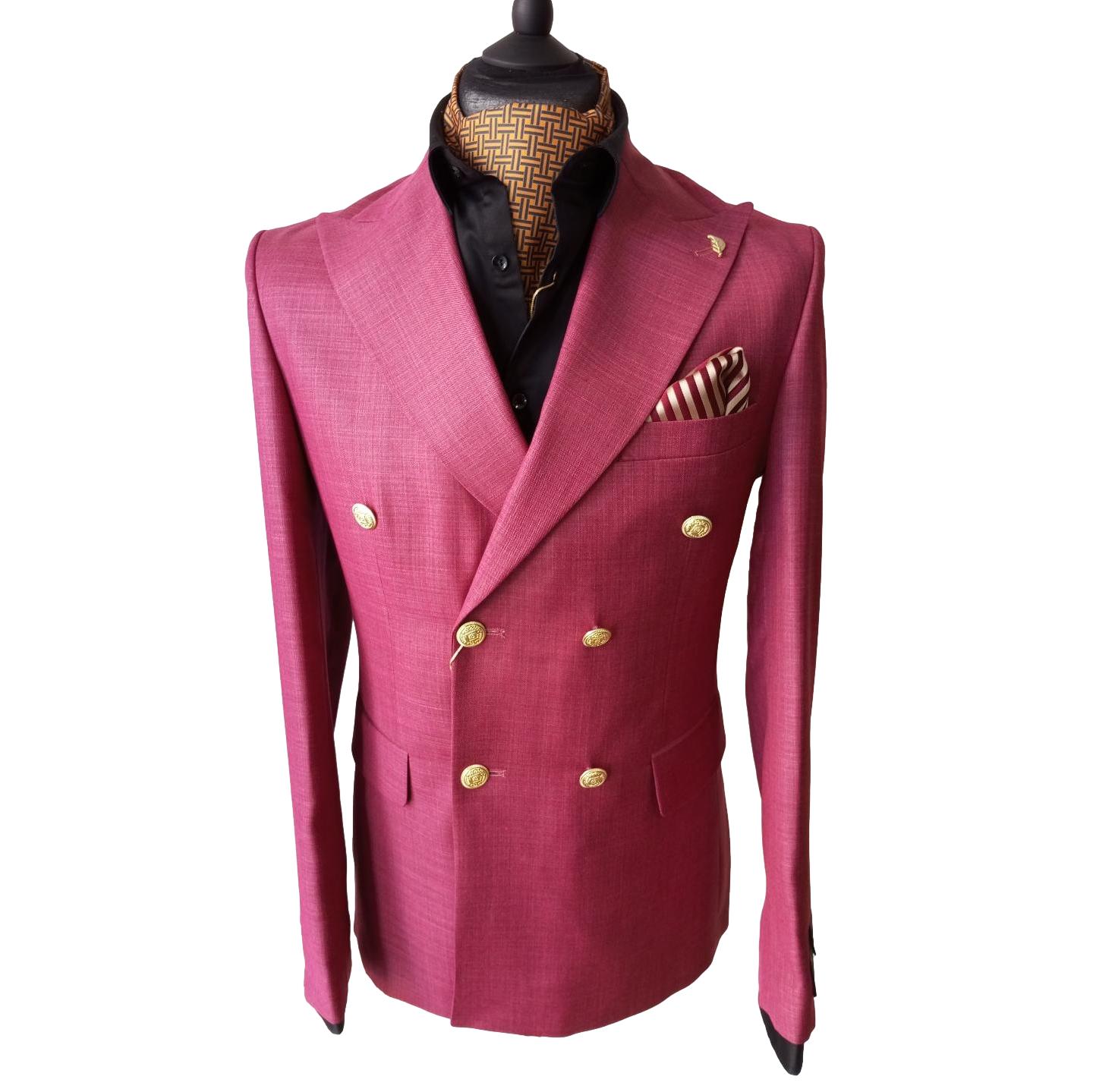 Le costume blazer croisé Marvin en rose fuchsia incarne l'élégance contemporaine avec sa coupe slim raffinée.