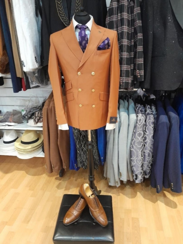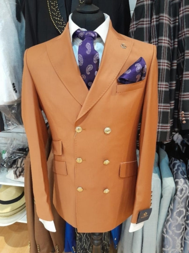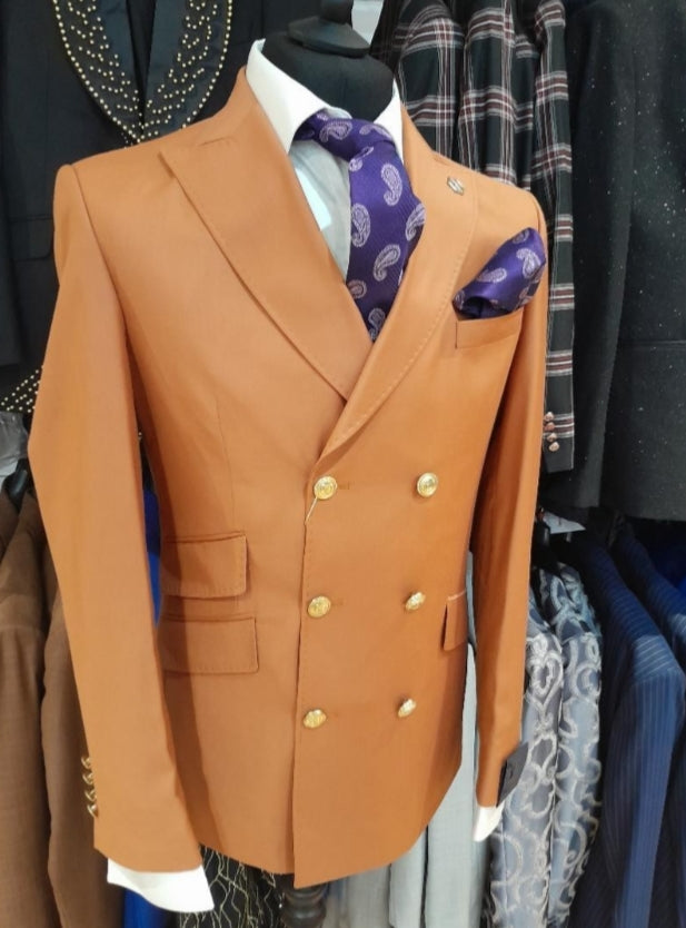 Le costume blazer croisé Toscane en marron clair incarne l’élégance classique avec une touche contemporaine.