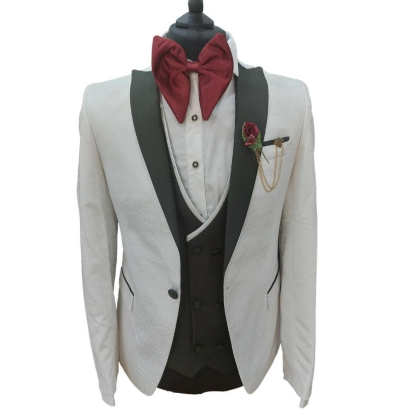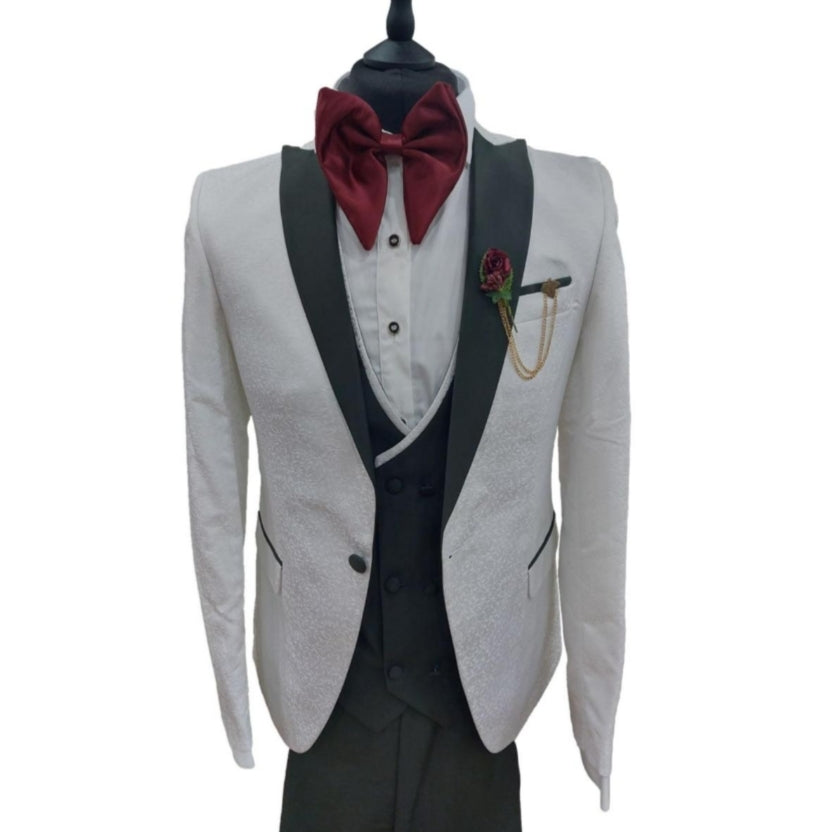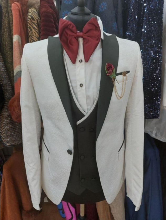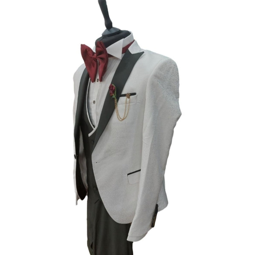 Costume de cérémonie 3 pièces blanc et vert : Oscar