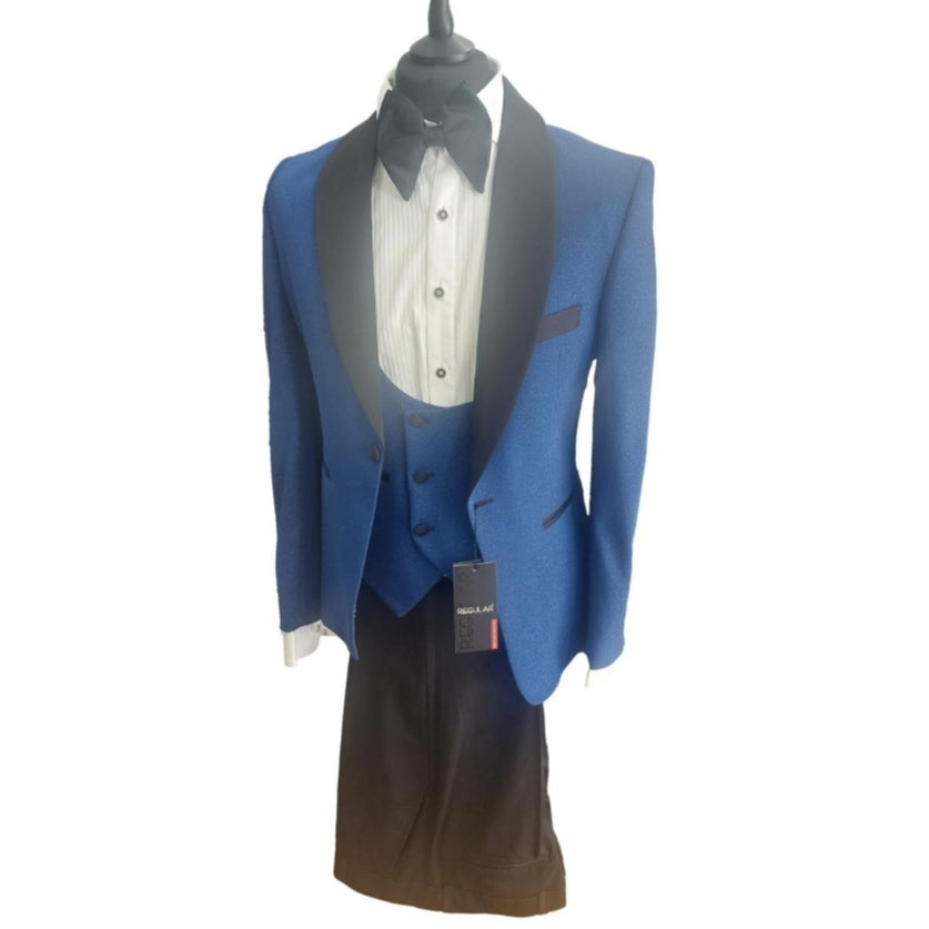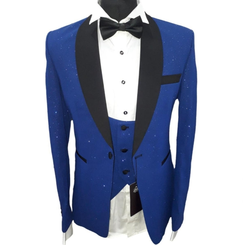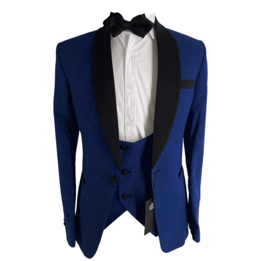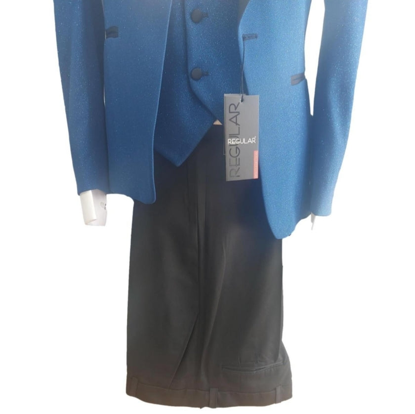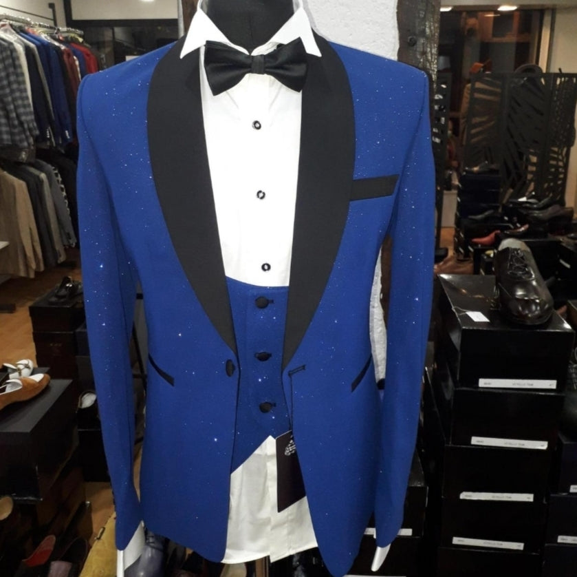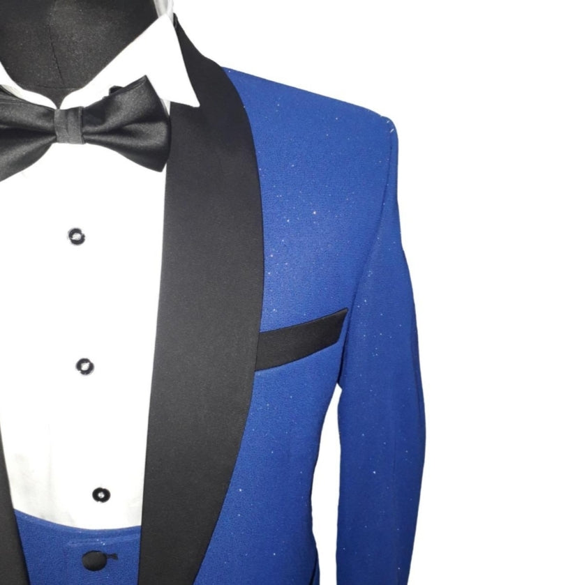 Le costume de cérémonie Maestro bleu électrique allie élégance et originalité grâce à sa laine brillante et son col satiné.