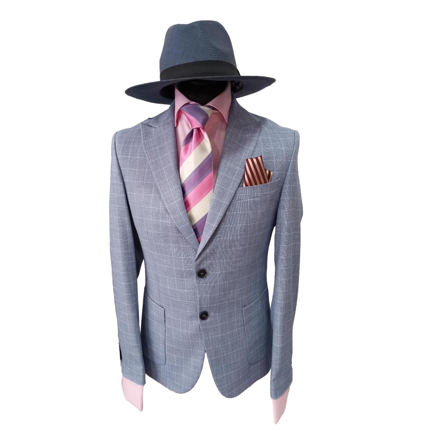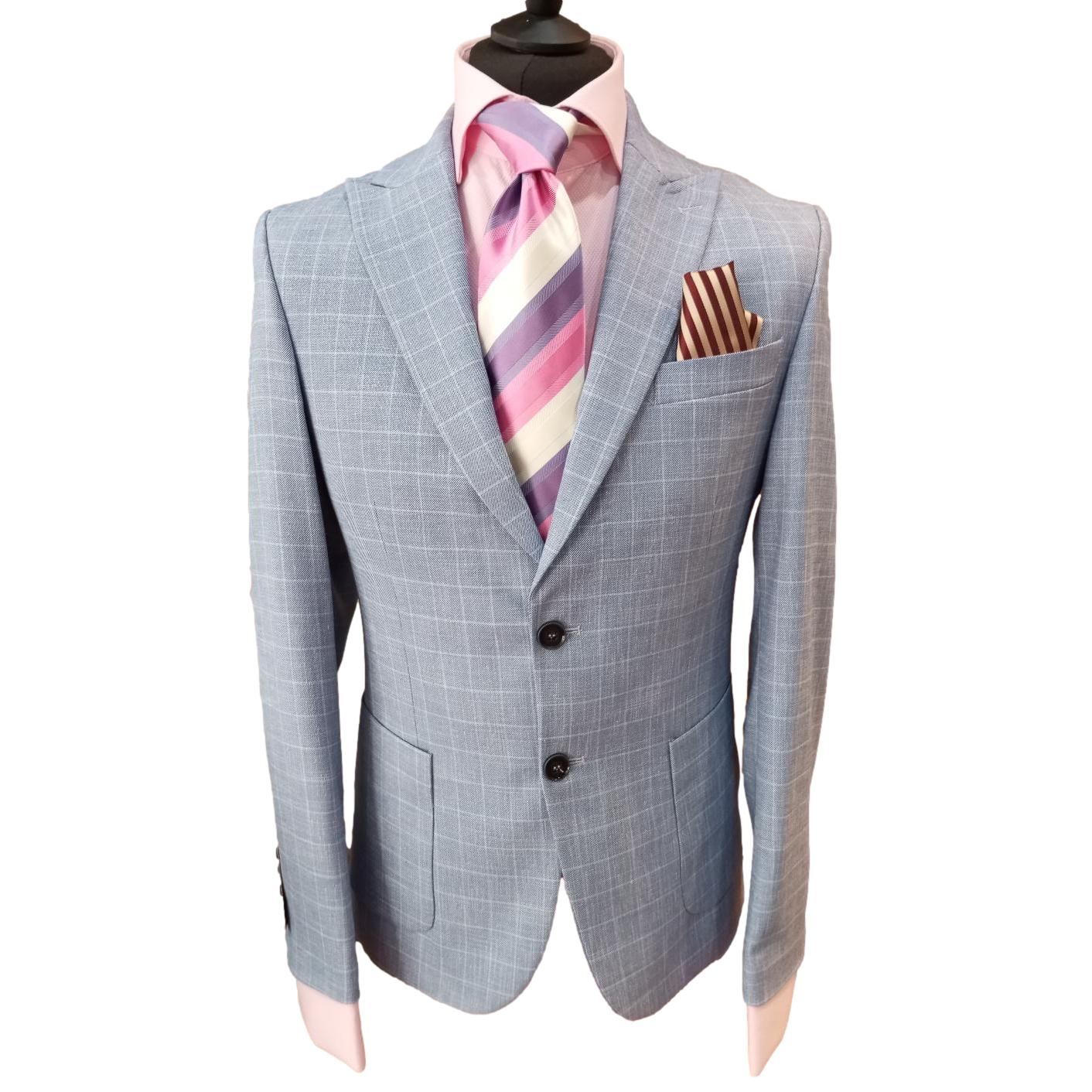 Sa coupe soignée et son tissu à carreaux bleu clair en font un choix idéal pour les occasions habillées, soirées et cérémonies, garantissant un style raffiné et contemporain.
