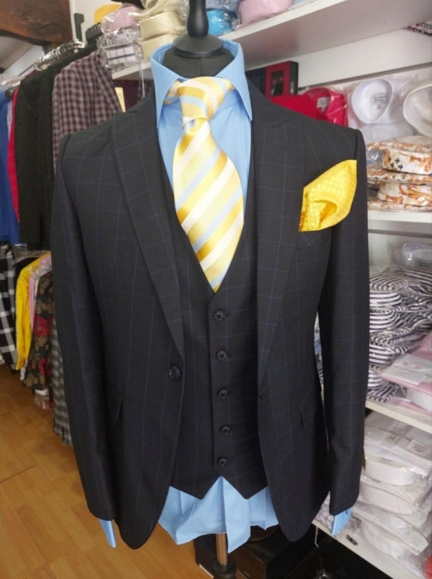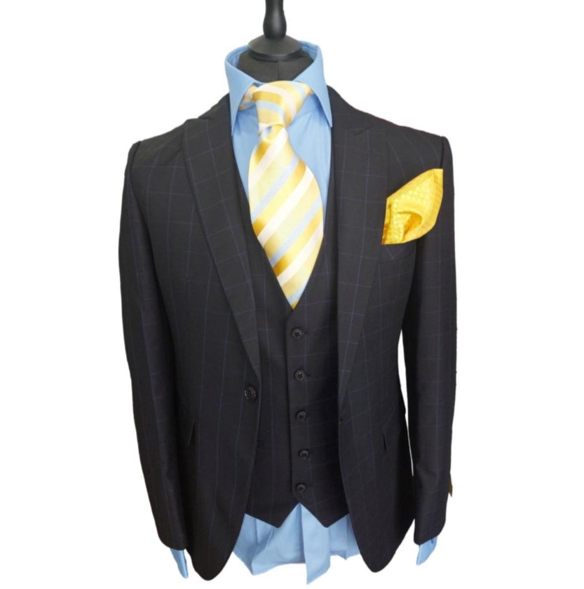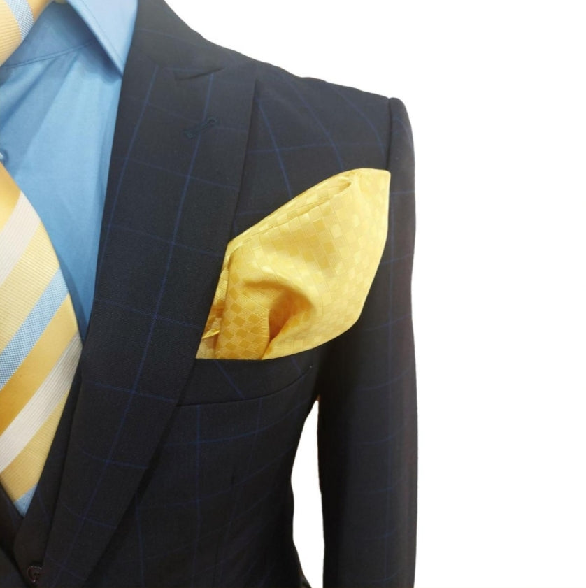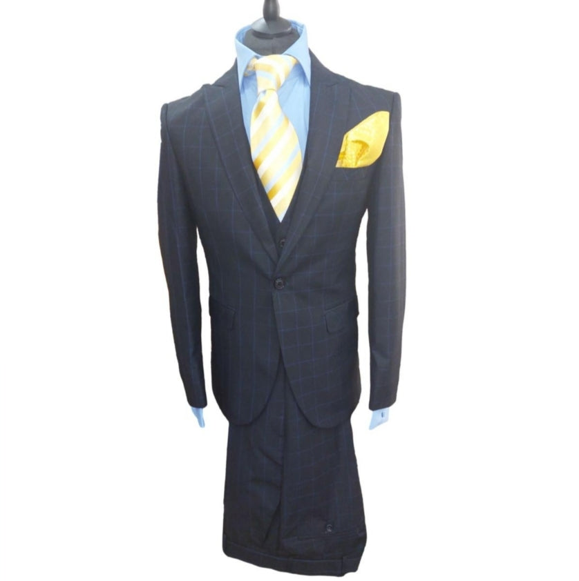 Le costume Herman bleu de nuit allie élégance classique et modernité avec son motif à carreaux subtil.