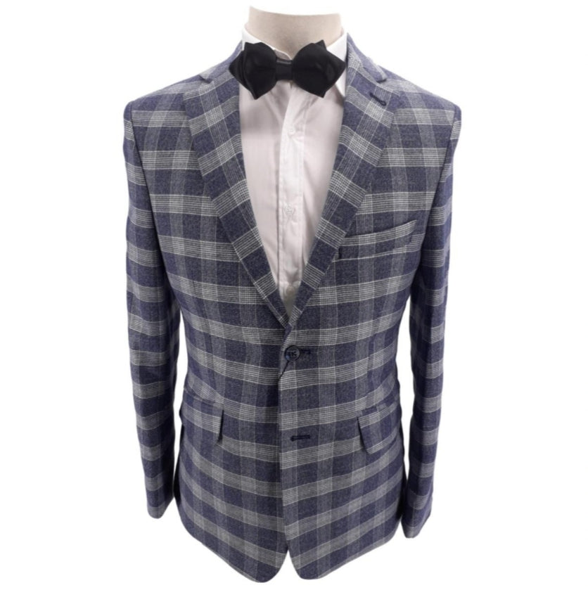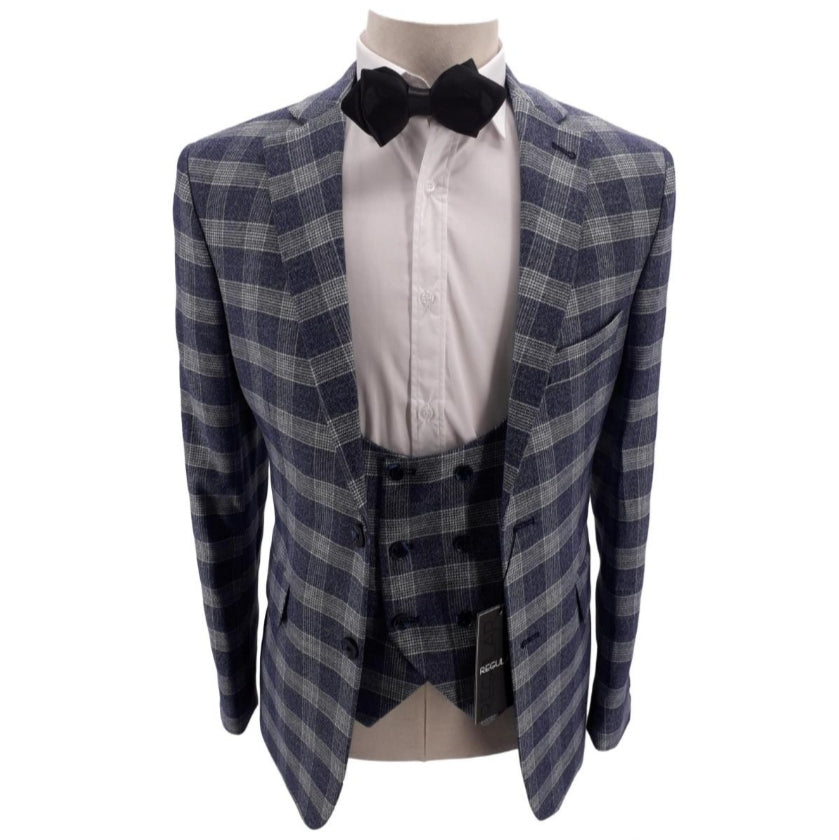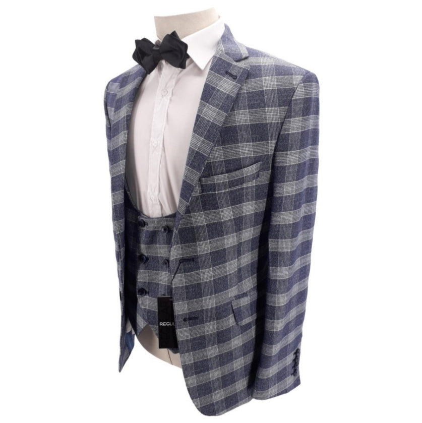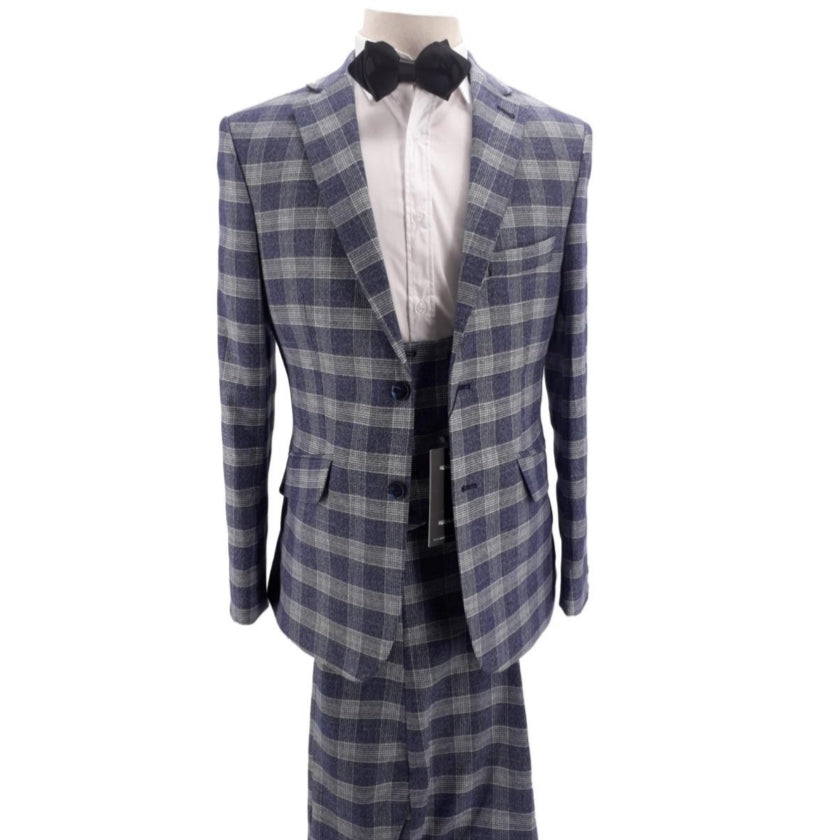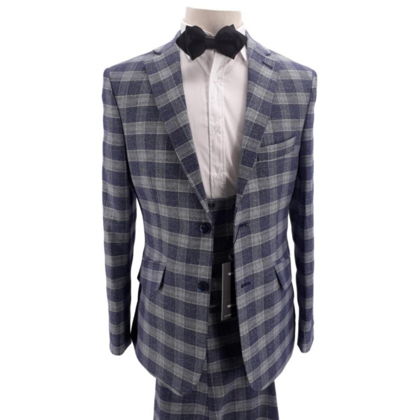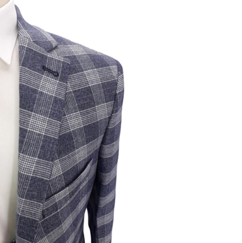 Le costume Luciano en laine bleu à carreaux allie élégance classique et confort exceptionnel.