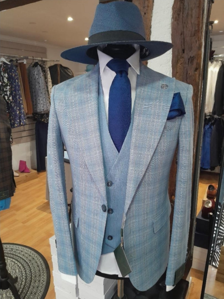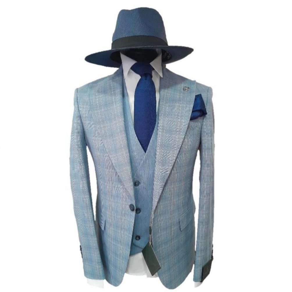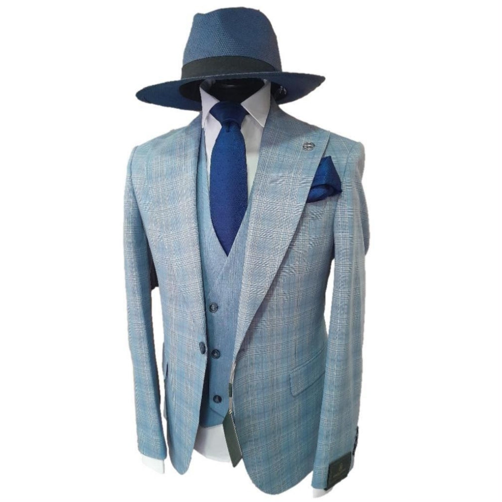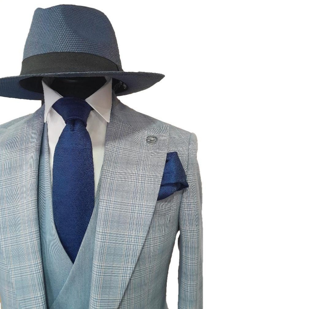 Le costume Salvatore à carreaux bleu allie élégance classique et modernité.