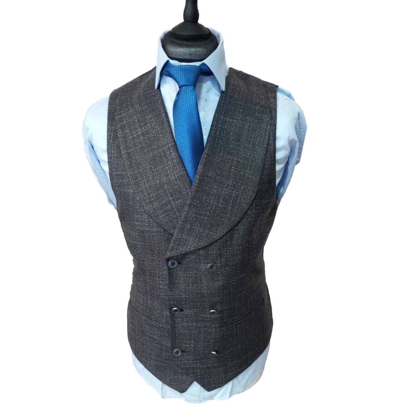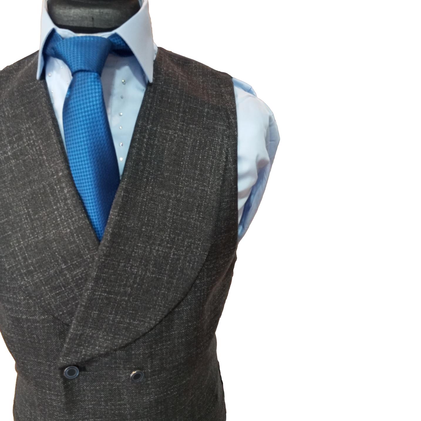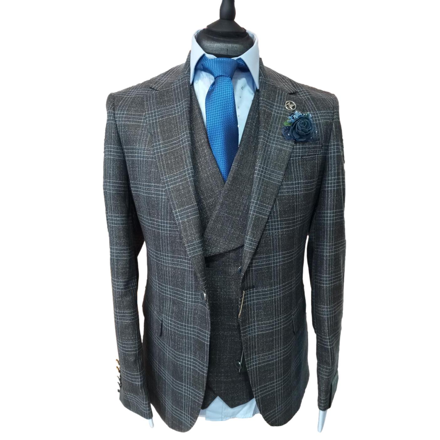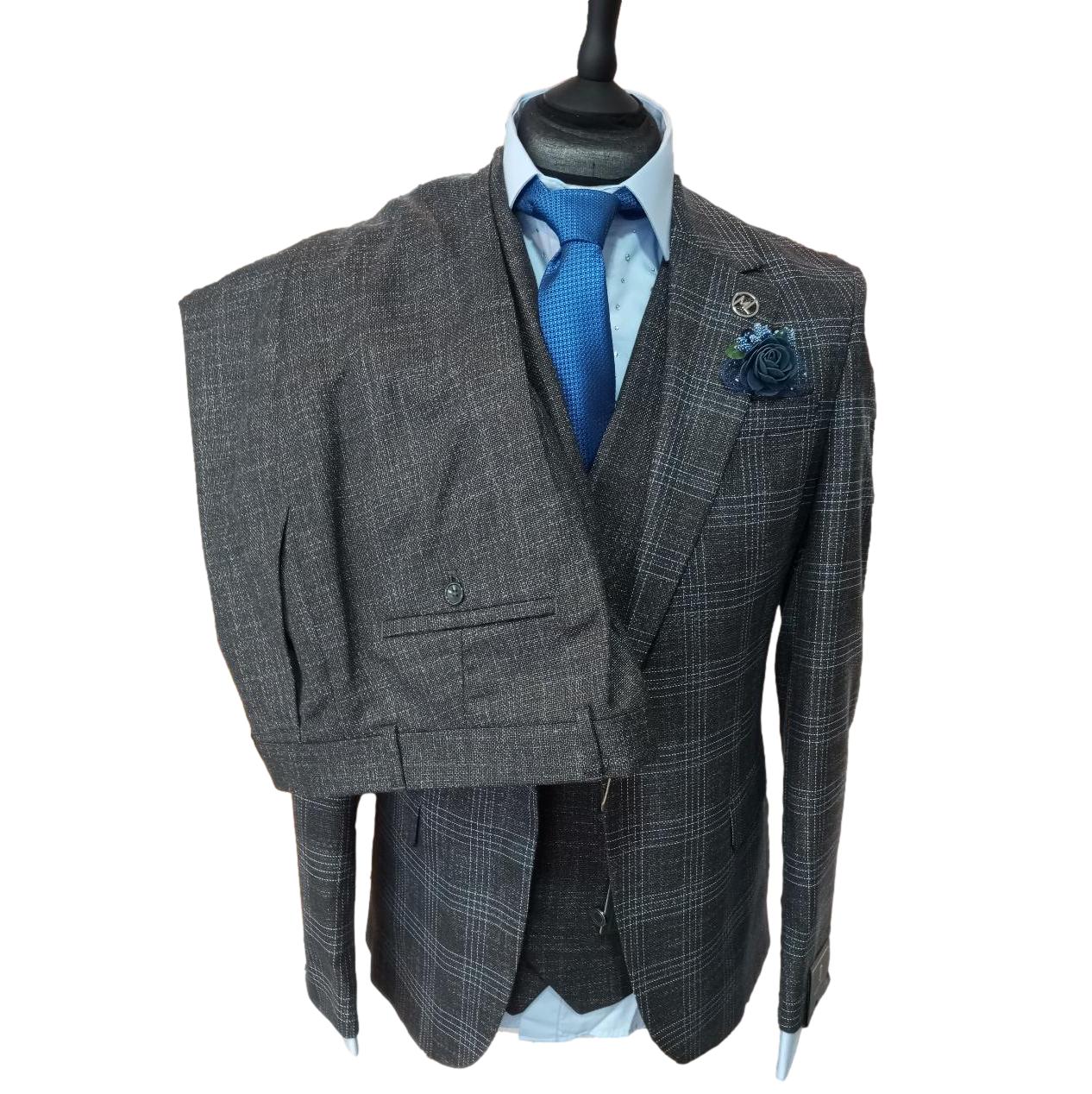 Le costume à carreaux Denver incarne l'élégance masculine dans sa forme la plus raffinée. Ce costume trois-pièces en gris combine une veste à carreaux avec un pantalon et un gilet croisé de couleur unis, créant une silhouette harmonieuse. Sa coupe slim fit contemporaine est rehaussée par un mélange laine-viscose de qualité supérieure, garantissant confort et tenue impeccable. Les détails techniques - veste à un bouton avec deux fentes d'aisance, gilet coordonné - témoignent d'une confection soignée. Un ensemble intemporel qui s'adaptera parfaitement à vos événements formels et occasions spéciales.