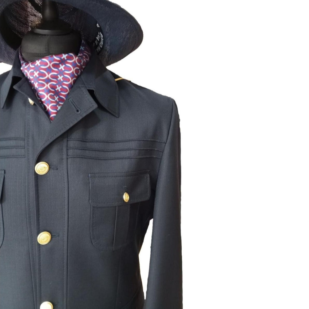- Veste à 5 boutons dorés droits avec 2 fentes d'aisance au dos et 4 poches latérales