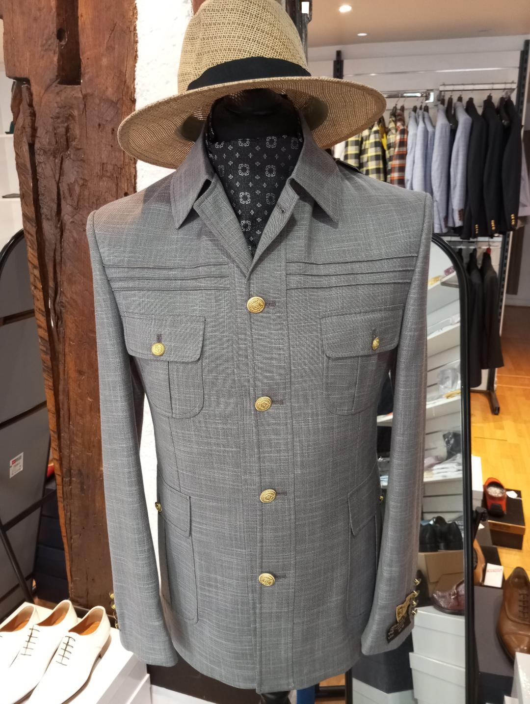 Le costume safari Jason allie élégance classique et modernité avec sa coupe slim fit et son coloris gris intemporel.