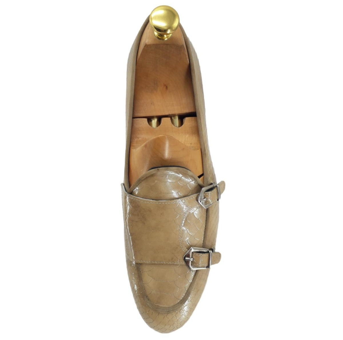 Mocassin à double boucle cuir façon croco beige - Venezia