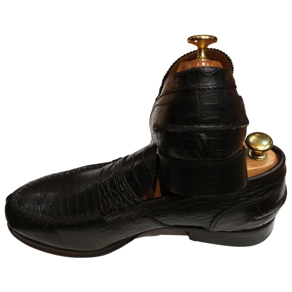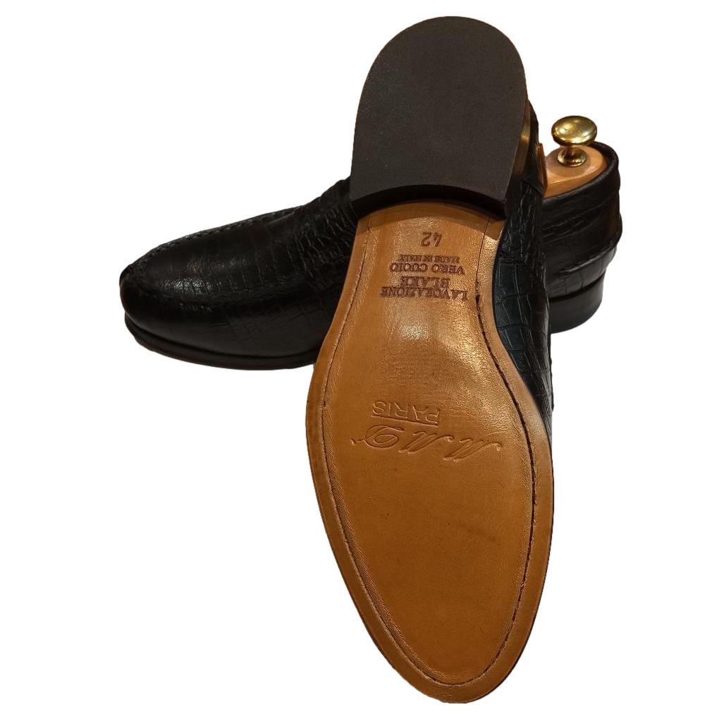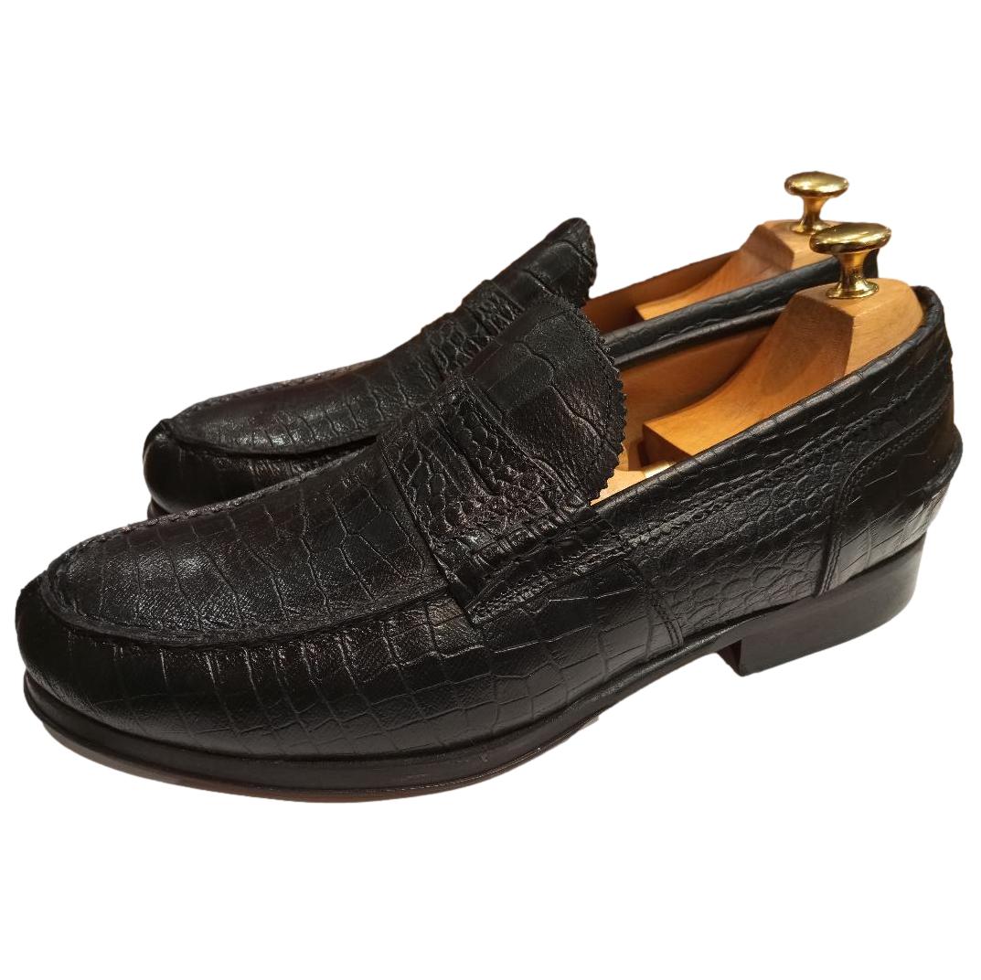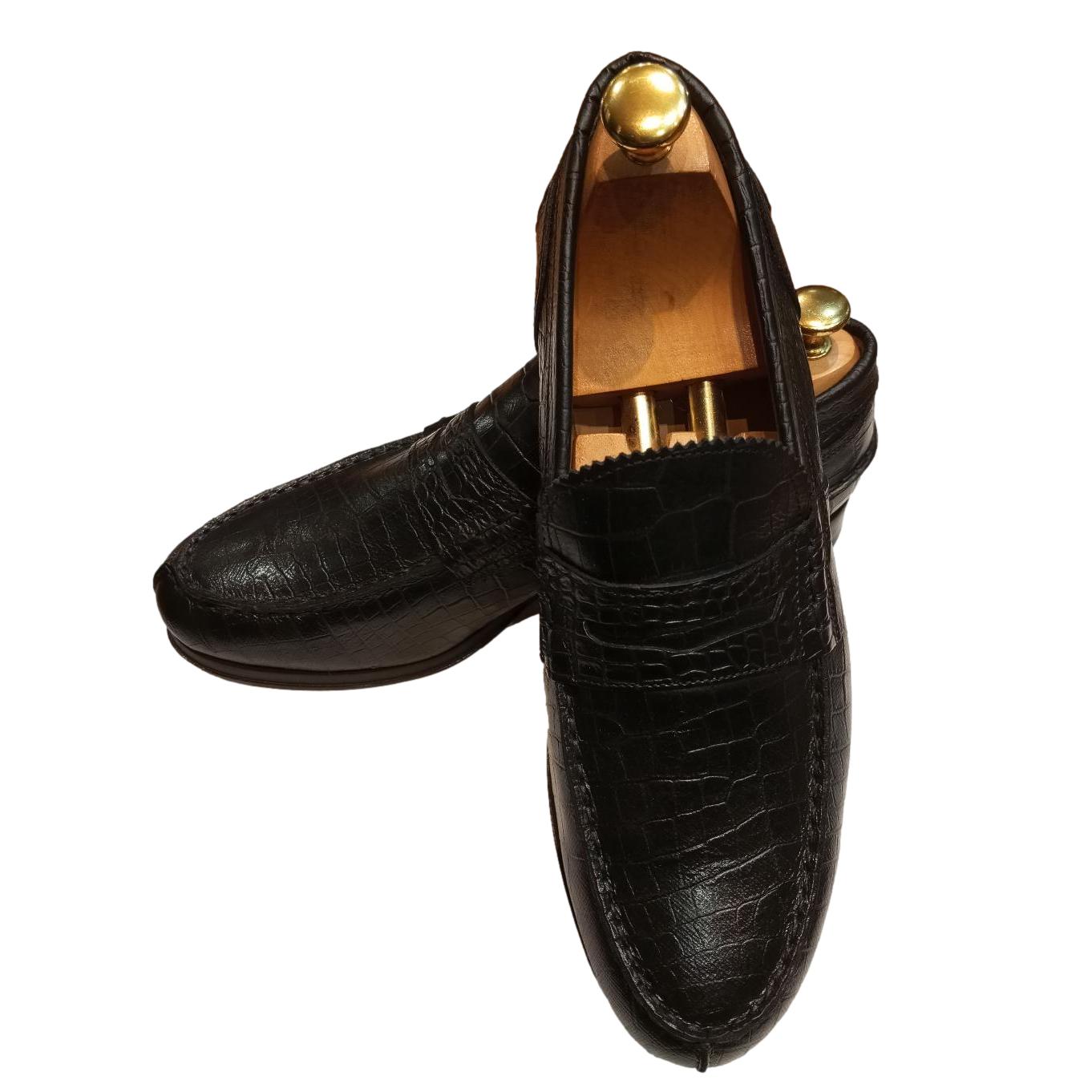 Découvrez le Mocassin cuir noir - College, entièrement confectionné par des artisans italiens avec du cuir façon croco de grande qualité.