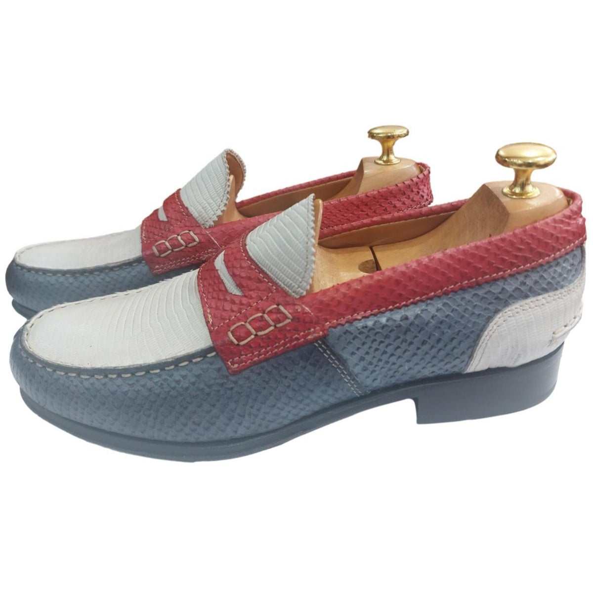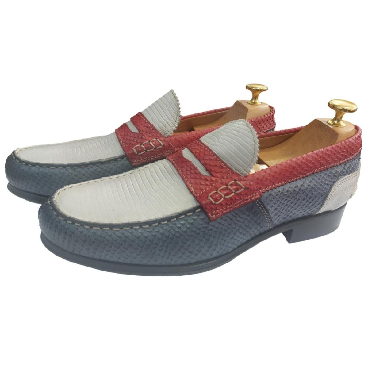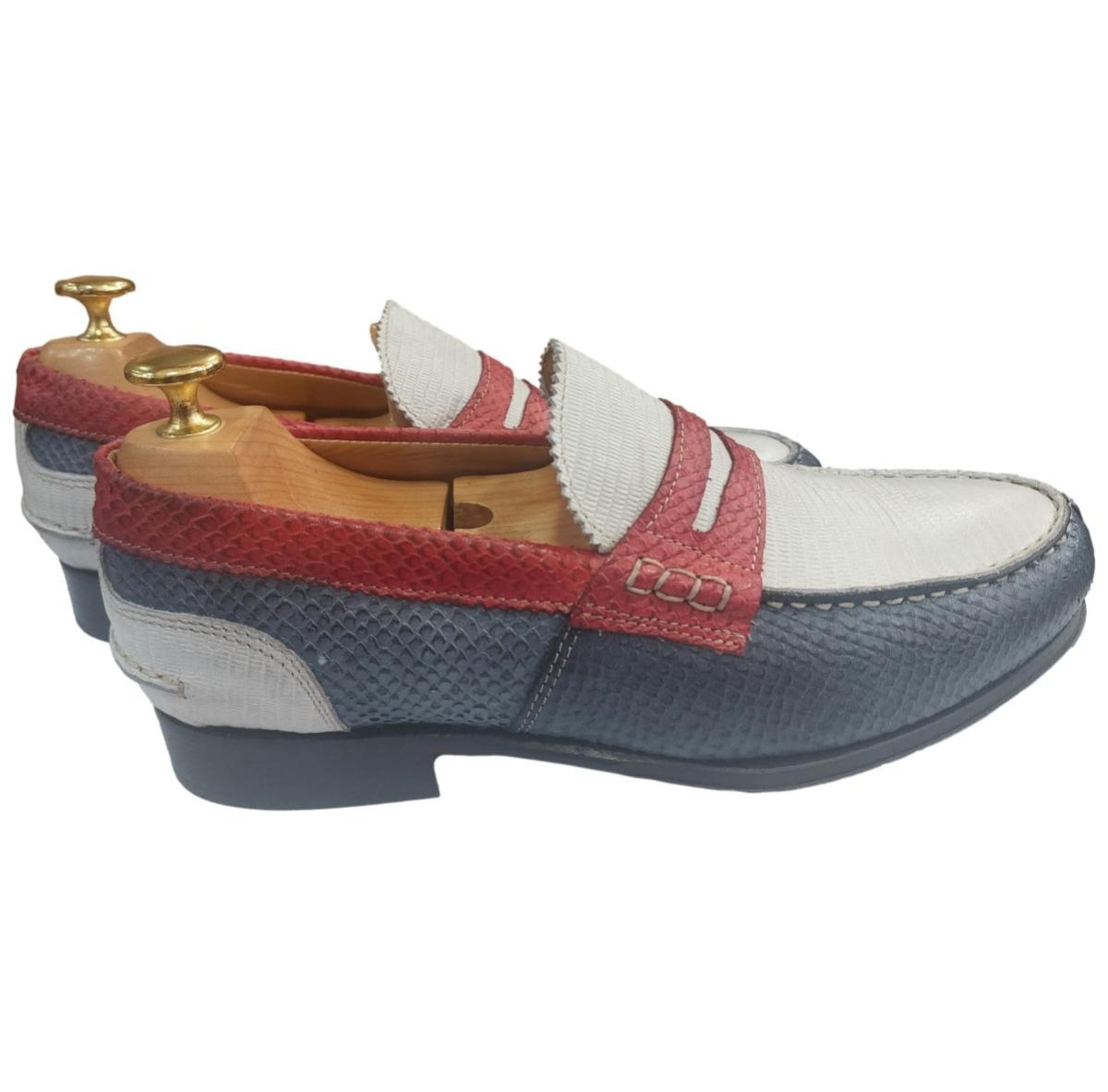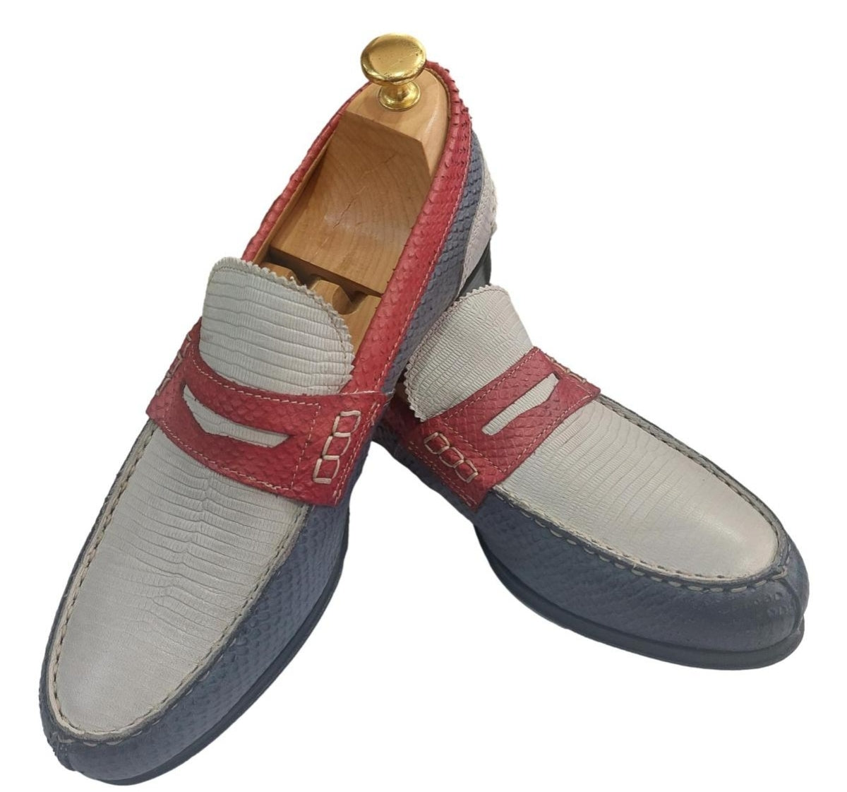 Ce mocassin tri-colore bleu-blanc-rouge allie élégance et savoir-faire artisanal italien.
